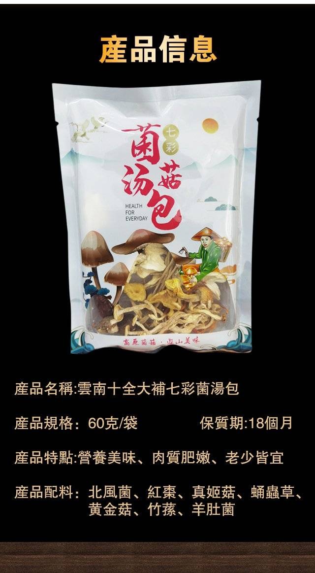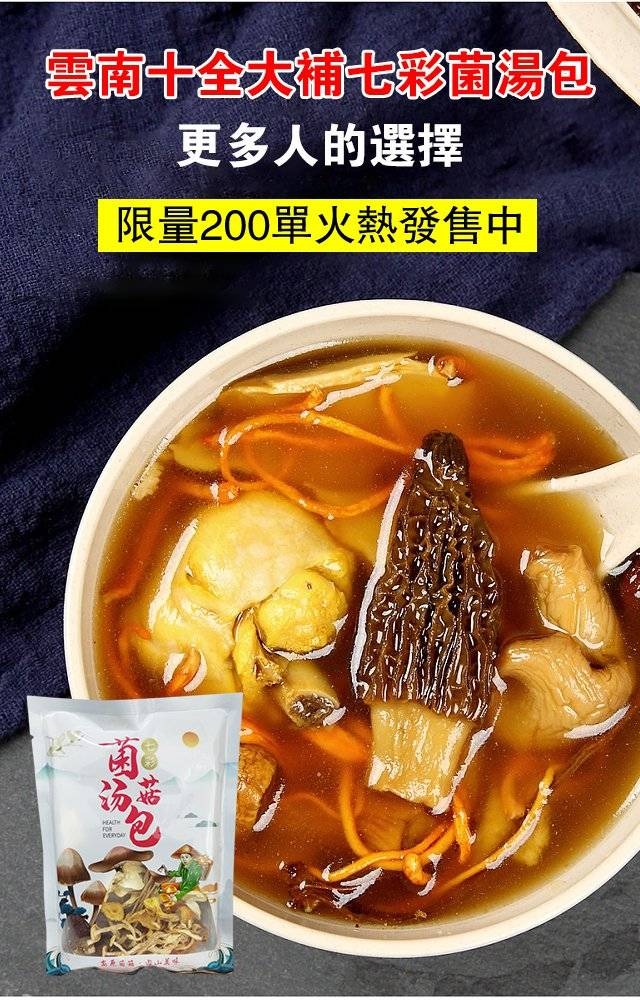 半小時前七彩菌湯包,來自深山的菌湯美味!【滋補佳品 無熏硫,煲湯,燉煮入味的家庭神器 】滋補養生,鮮香濃郁,菌體肥嫩,好食材, 科學配比, 免去選材煩惱! - 【限時特惠,每包僅需NT$139】野生菌湯包10袋